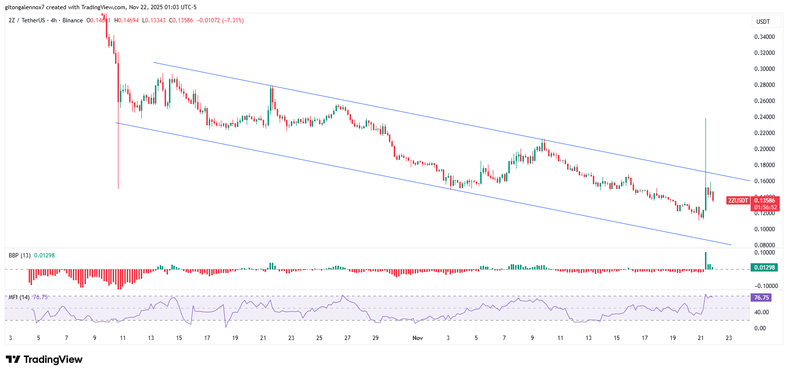 In the past 24 hours, the price of 2Z surged by more than 20%, but it quickly erased most of these gains.
