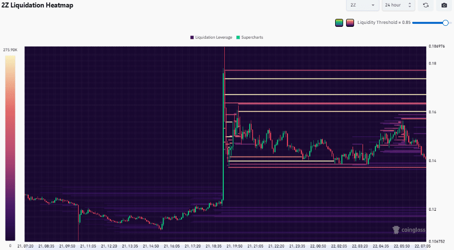 At the same time, 2Z still had some positions below $0.14, but were not as dense as those above. Again, they were very close to the price.