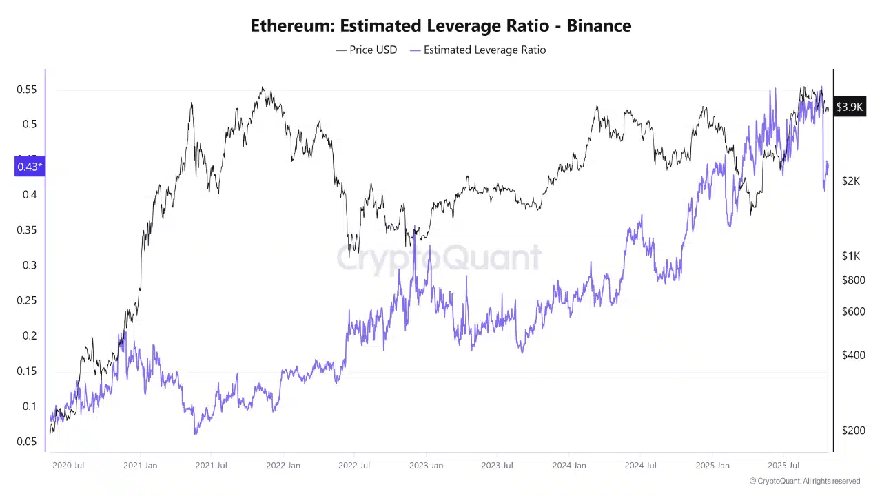 Ethereum’s Estimated Leverage Ratio (ELR) on Binance has climbed close to record highs, meaning traders are taking on heavy risk.