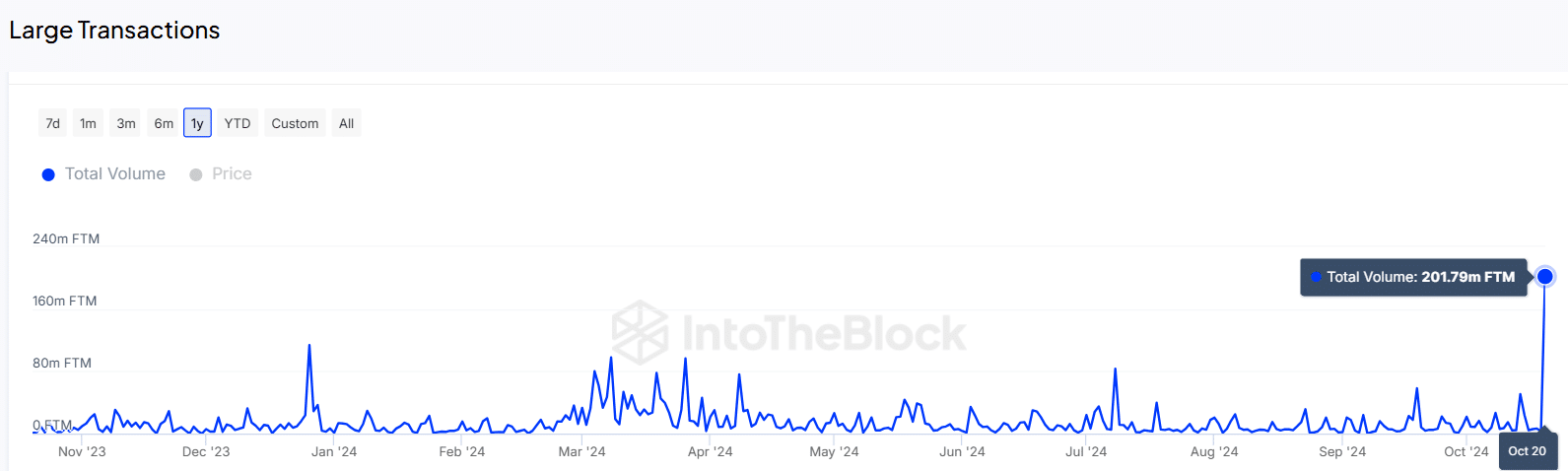 These large transaction volumes are at the highest level in one year, suggesting that Fantom whales have become active after the recent gains.