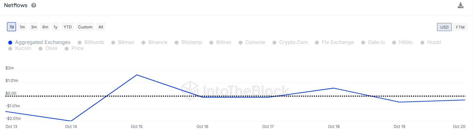 At the same time, exchange netflows show that traders are withdrawing their FTM tokens from exchanges. In the last two days, FTM exchange netflows have been predominantly negative, which could ease the selling pressure.