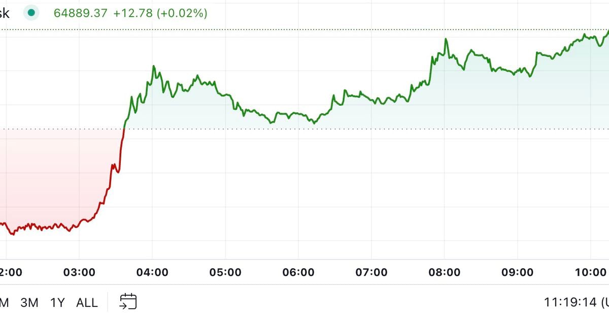 Bitcoin moved to near $65,000 after Chinese stocks shrugged off mixed reactions to stimulus plans to finish the day higher. BTC traded at nearly $64,900 during the late European morning, over 3.4% higher in the last 24 hours. The broader digital asset market, as measured by the CoinDesk 20 Index, has risen about 2.9%. Latest announcements from the Chinese government regarding stimulus plans fell short of expectations, but the Shanghai Composite Index still closed the day over 2% higher. “Chinese equities rebounded off the weekend disappointments, so risk sentiment will likely remain in ‘buy everything’ mode until further notice,” Augustine Fan, head of insights at SOFA, told CoinDesk in a Telegram message.