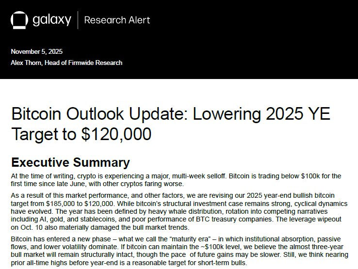 In the latest report, Galaxy Research has downgraded its year-end projection by 35% to $120k from $185k.