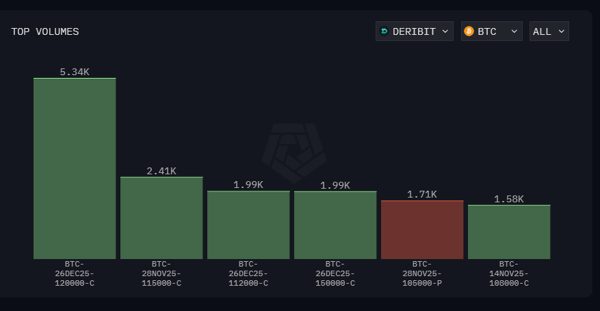 Notably, the top Options volumes were calls (bullish bets) for $120k price target, followed by $115k and $112k levels.