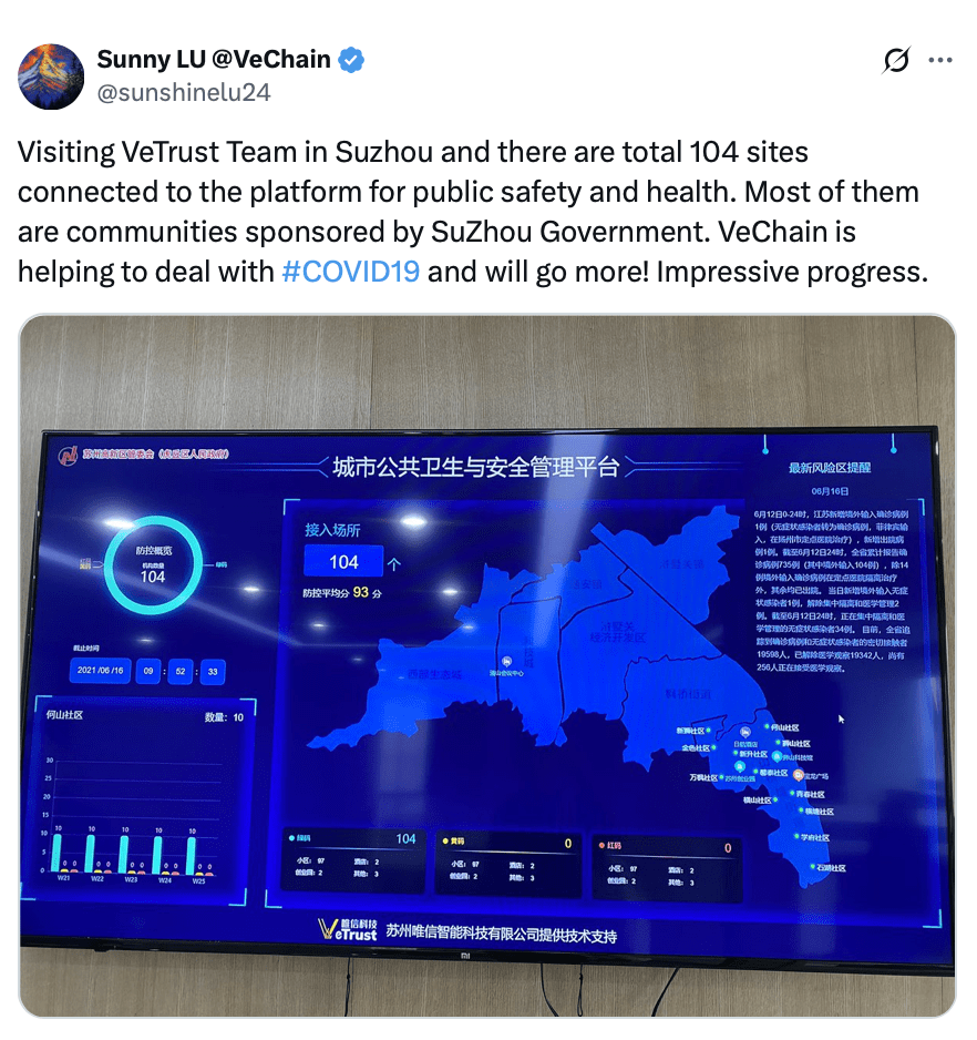 One of VeChain’s first high-profile partnerships started in 2019 with Walmart China, which built a blockchain-based traceability platform on the VeChain network.