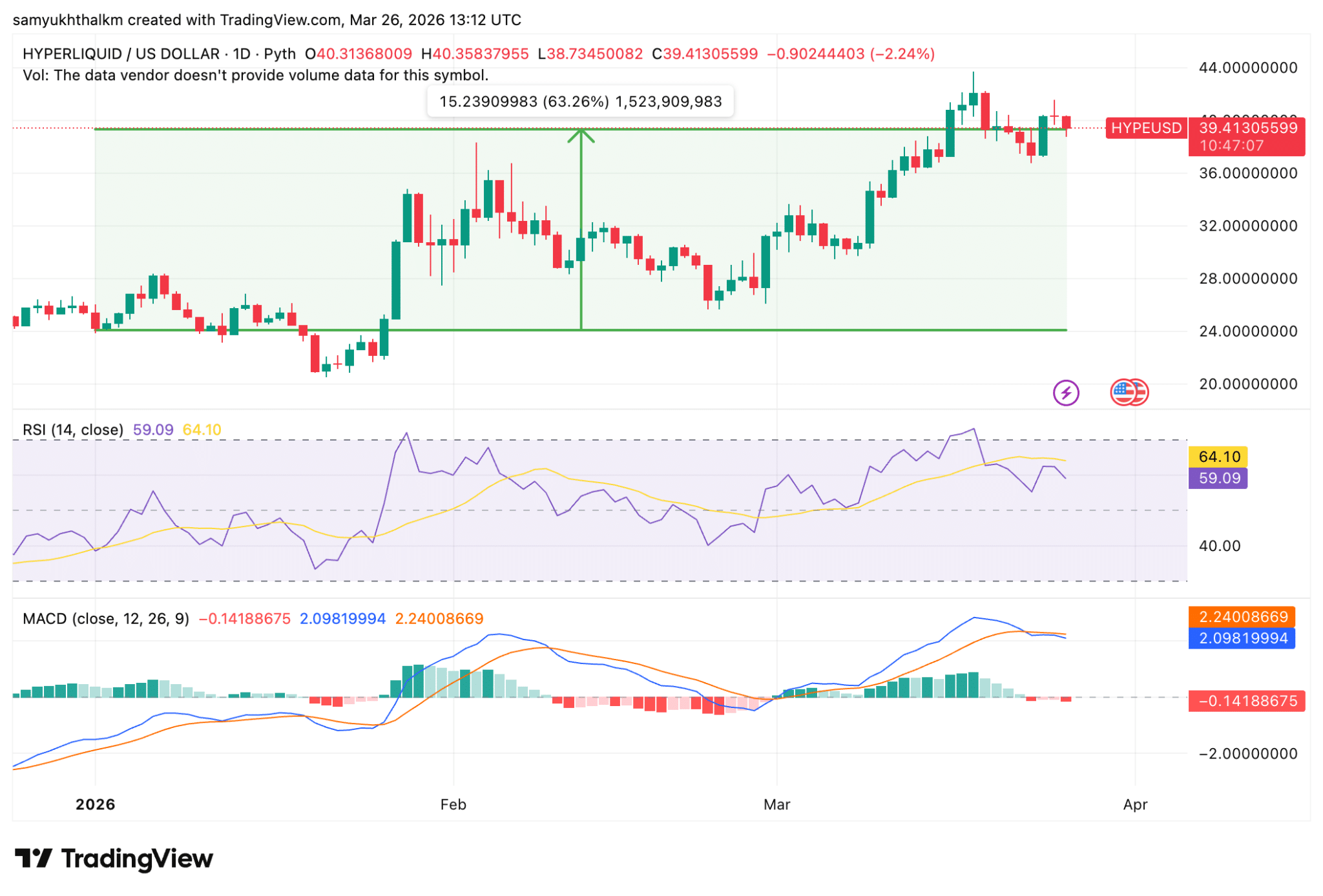 This buyback pressure was visible in the native token’s price action too. At the time of writing, HYPE was up over 60% YTD, going from sub-$25 levels to nearly $40 as seen on the daily chart. Higher lows through March meant buying was steady, while the pace seemed to be rightly elevated.