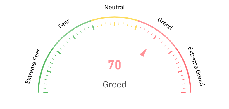 Furthermore, the Fear & Greed Index, currently at 70 (Greed), suggests market sentiment remains bullish, albeit cautiously.