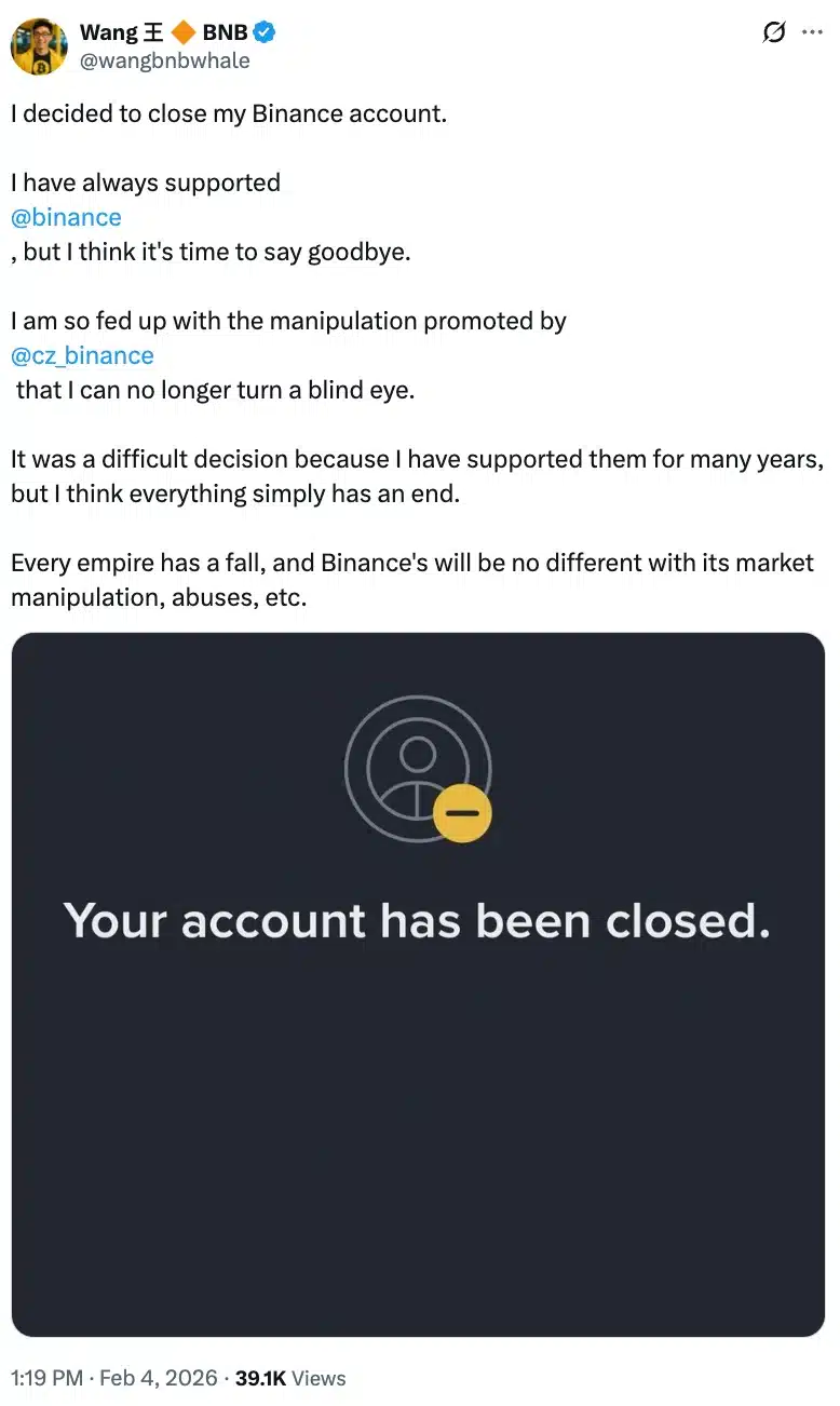 On 4th February 2026, many users on X began publicly leaving Binance [BNB], the world’s largest crypto exchange.