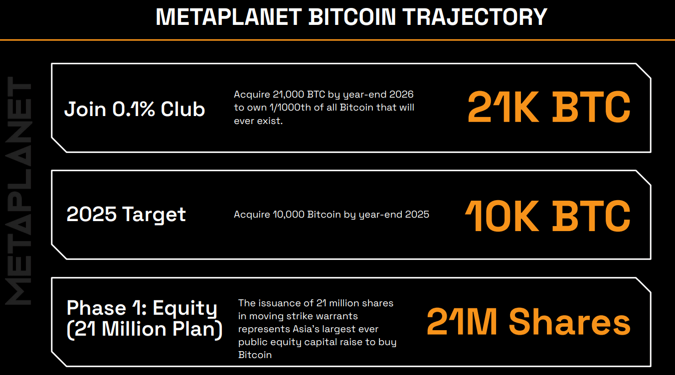 “Metaplanet issues 21 million shares of 0% discount moving strike warrants, proceeds to raise approximately ¥116 Billion to purchase additional $BTC; largest capital raise in Asian equity markets history to buy BTC”