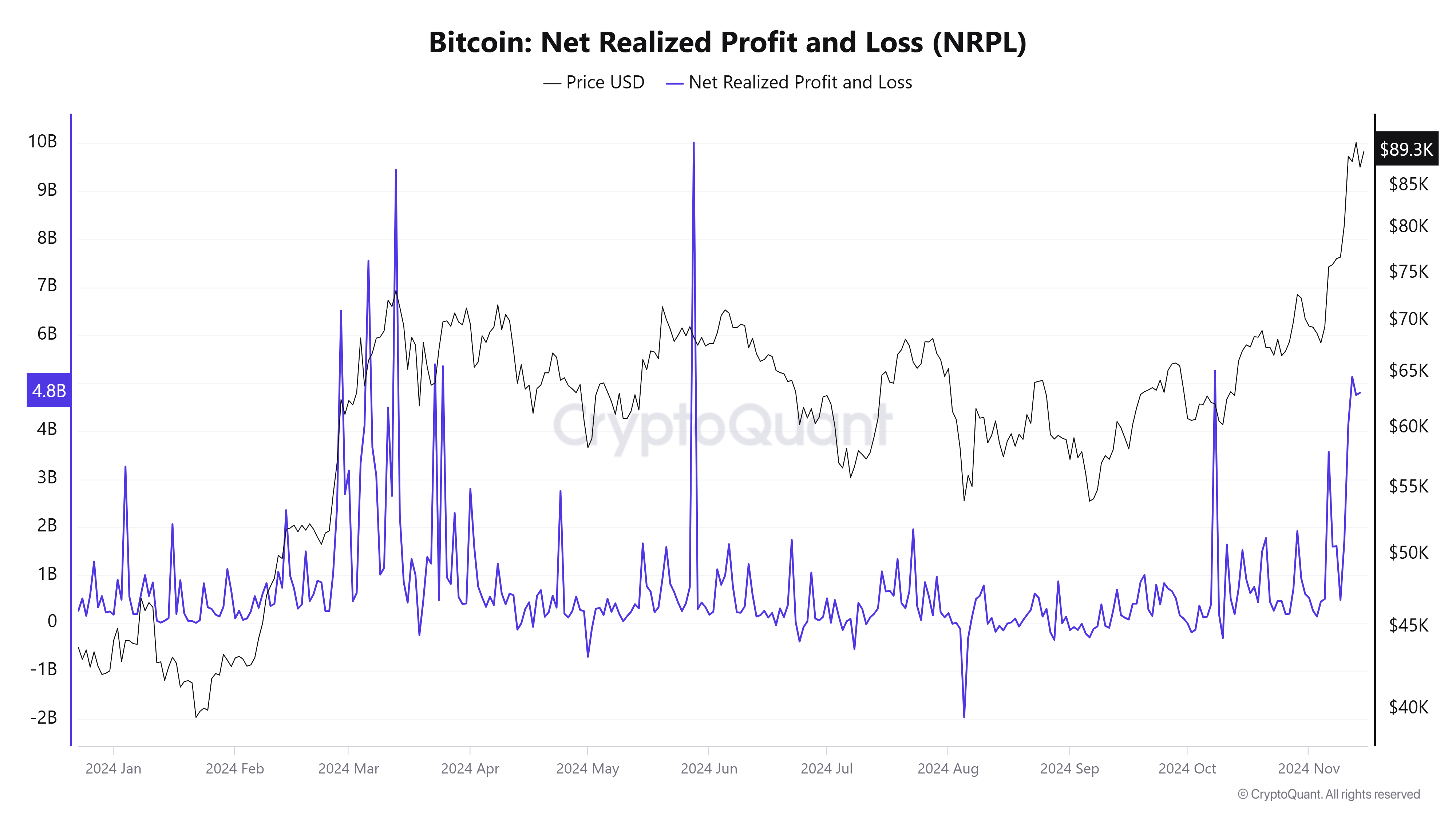 On Nov. 12, Bitcoin investors recorded $5.1 billion in profits as the asset traded near $88,000. By Nov. 13, profits declined slightly to $4.75 billion but rose again to $4.8 billion on Nov. 14, with Bitcoin’s price reaching a new all-time high above $93,000.