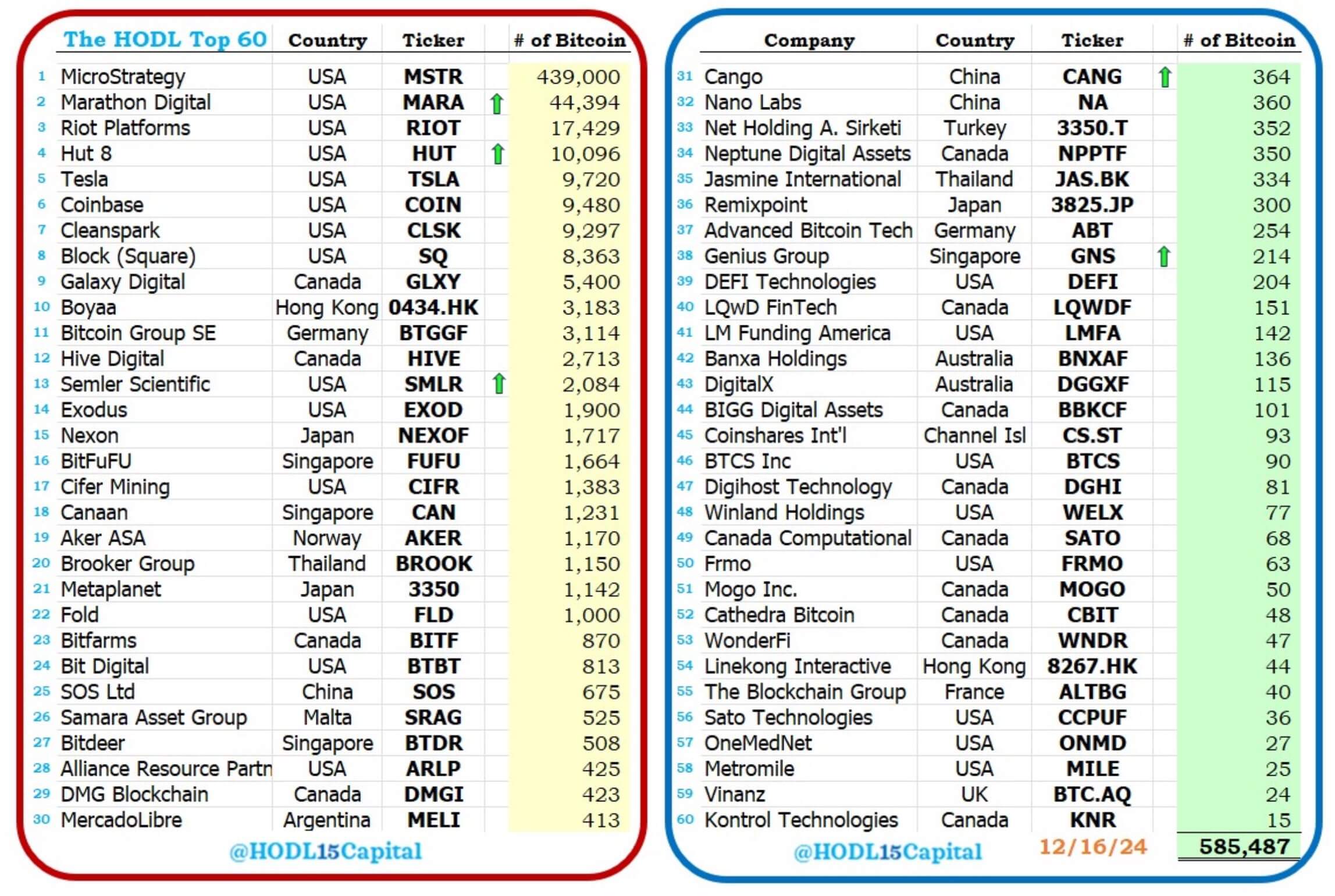 Top Bitcoin Holding Companies (Source: Hodl15Capital)