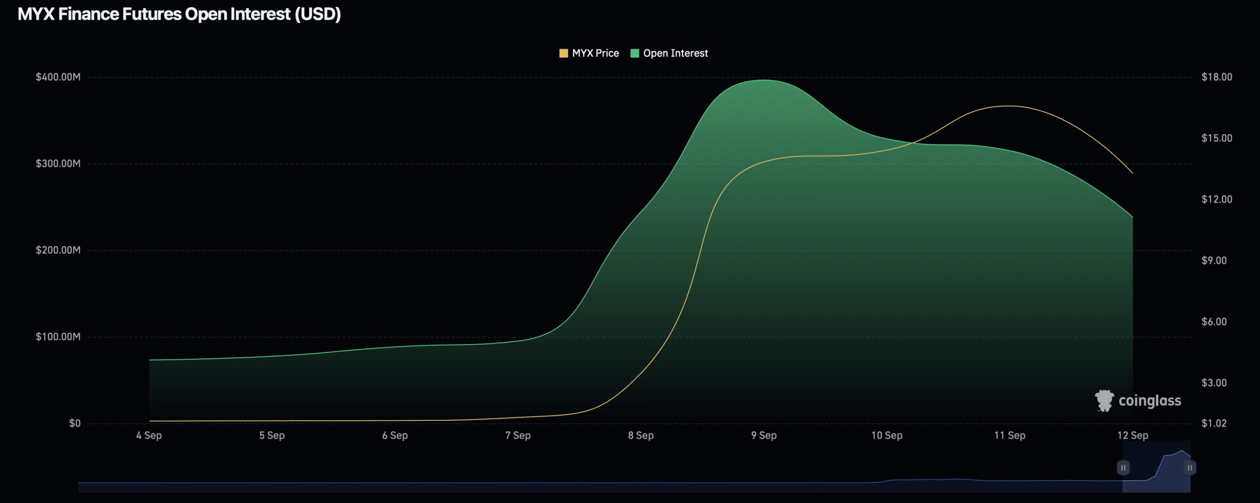 There has been a massive liquidity outflow from MYX in the derivatives market, as both long and short investors closed their positions.