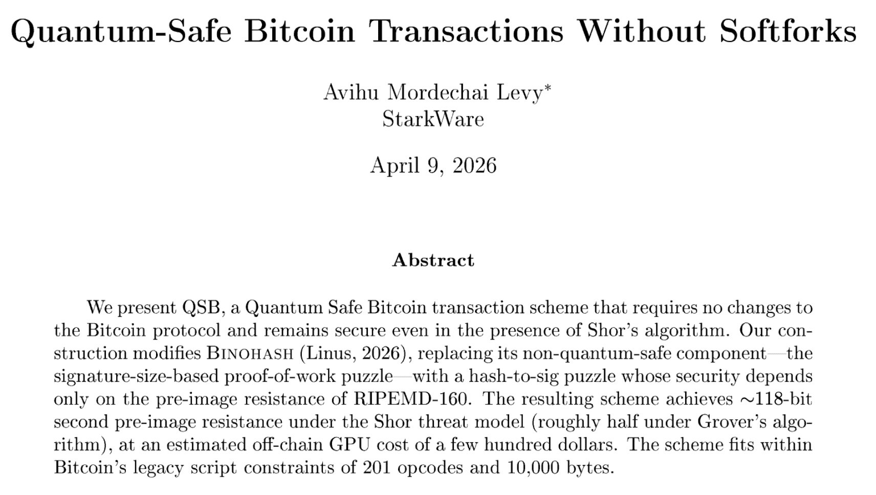 Levy released a whitepaper highlighting how Bitcoin transactions could become quantum-resistant without requiring a soft fork. That said, it doesn’t come without trade-offs.