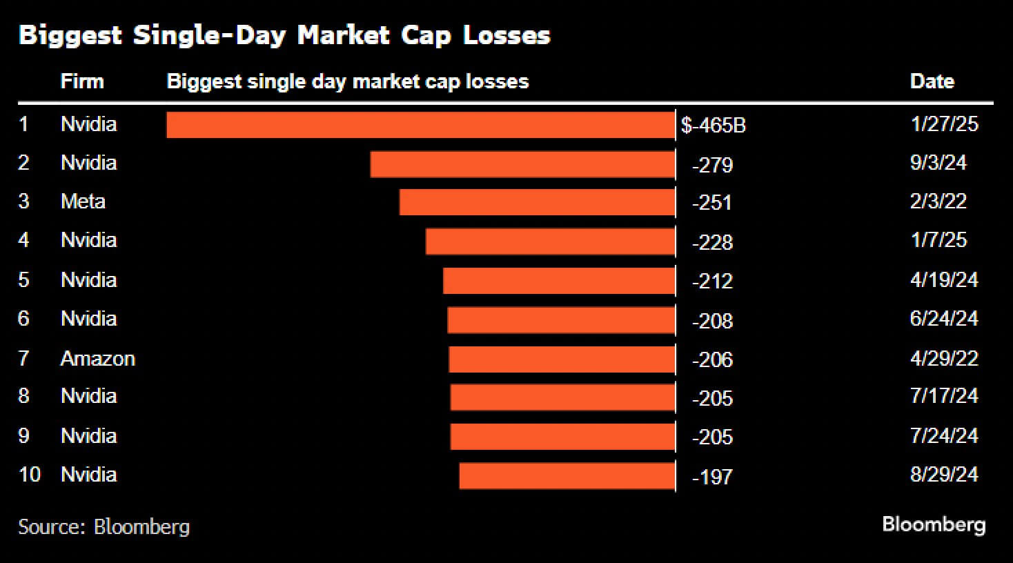 Nvidia’s stock plunged 13% as the Jan. 26 trading session began, erasing approximately $465 billion in market value.