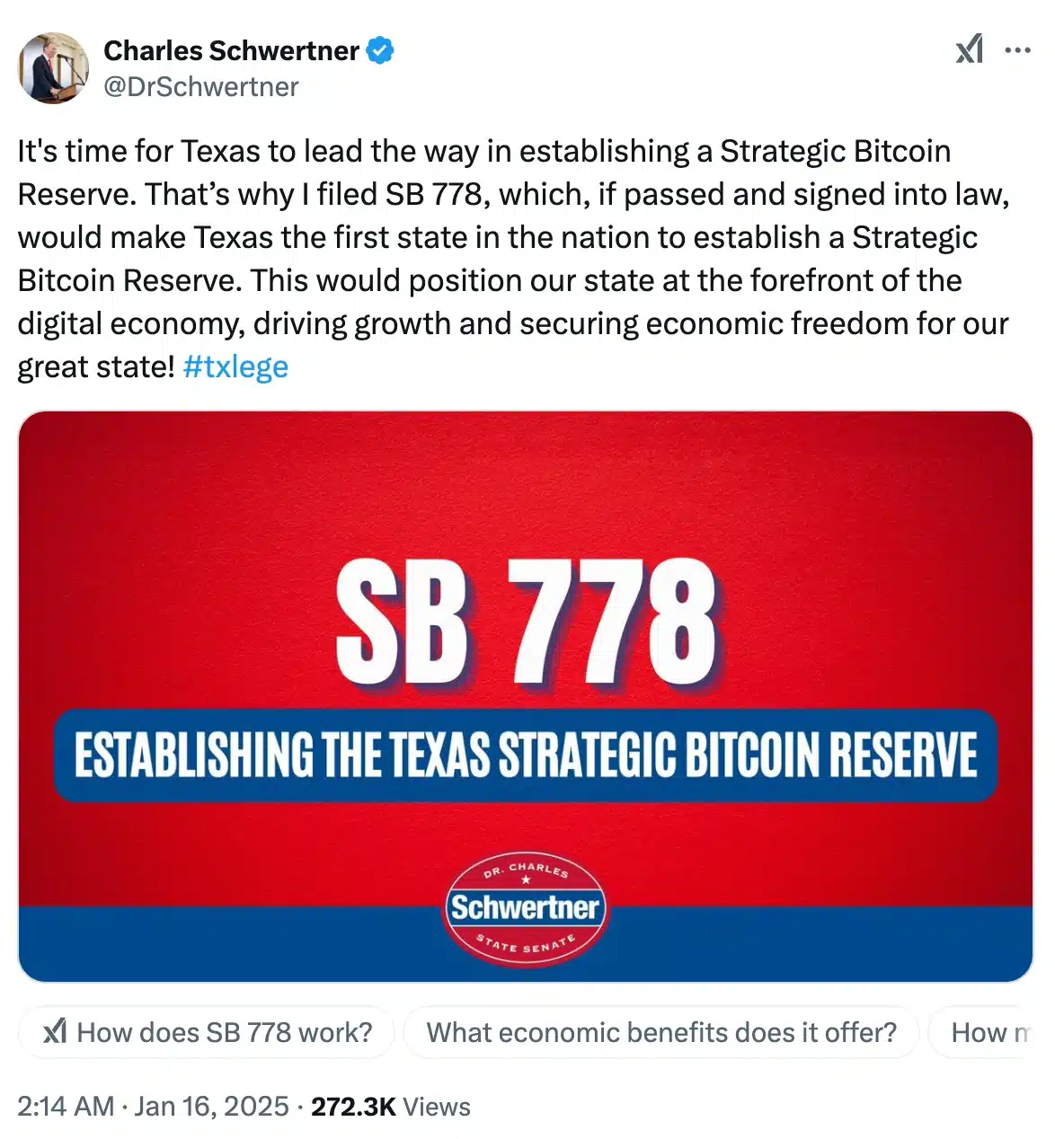 Texas Senator Charles Schwertner took to X (formerly Twitter) to comment on the matter, and stated,