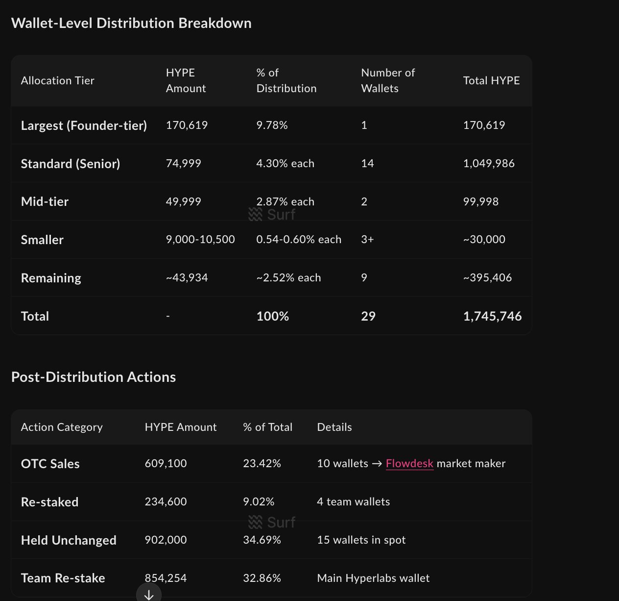According to on-chain analyst Kirby Crypto, tracking the post-unlock distribution, only 23% (609K tokens) of the 1.75 million HYPE tokens were sold via OTC desks. He added,