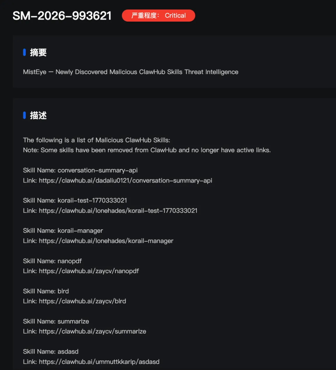 SlowMist said its Web3-focused threat intelligence solution, MistEye, issued high-severity alerts related to 472 malicious skills on the platform.