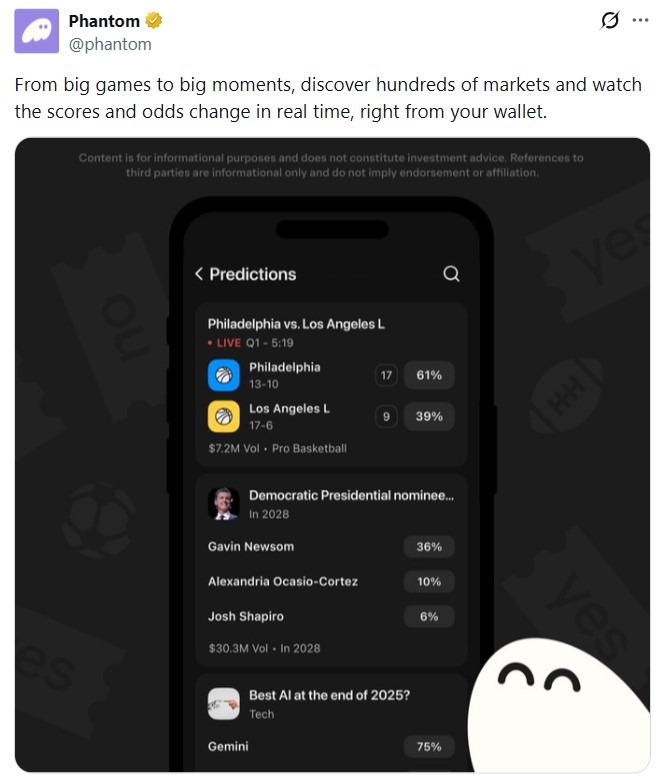 The wallet-native feature lets users trade tokenized event contracts across politics, economics and culture without leaving Phantom.