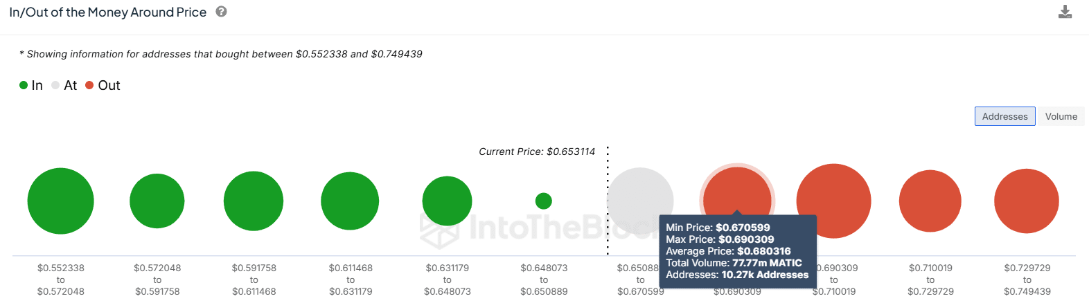 The In/Out of the Money Around Price (IOMAP) metric from IntoTheBlock shows that nearly 10,000 addresses bought POL between $0.65 and $0.67. This price zone could act as a support level, with a drop below set to cause a downturn.