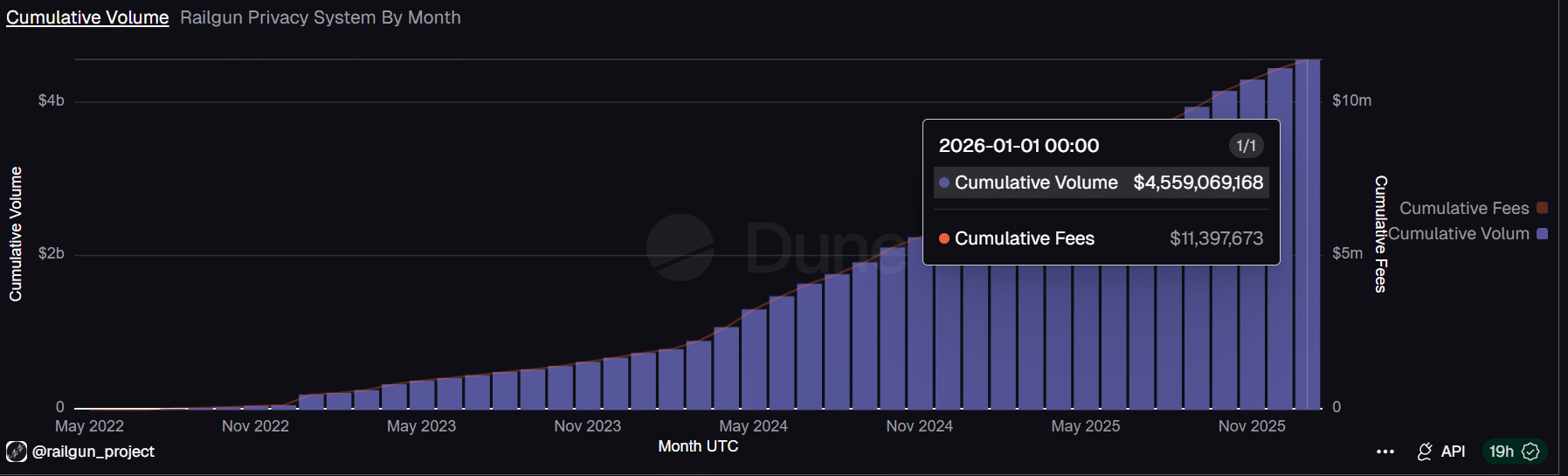 Additionally, the cumulative volume on the privacy protocol reached a record $4.5 billion, up from $2.4 billion a year ago. This translated into nearly 100% growth, or 2x, on a year-on-year (YoY) basis.