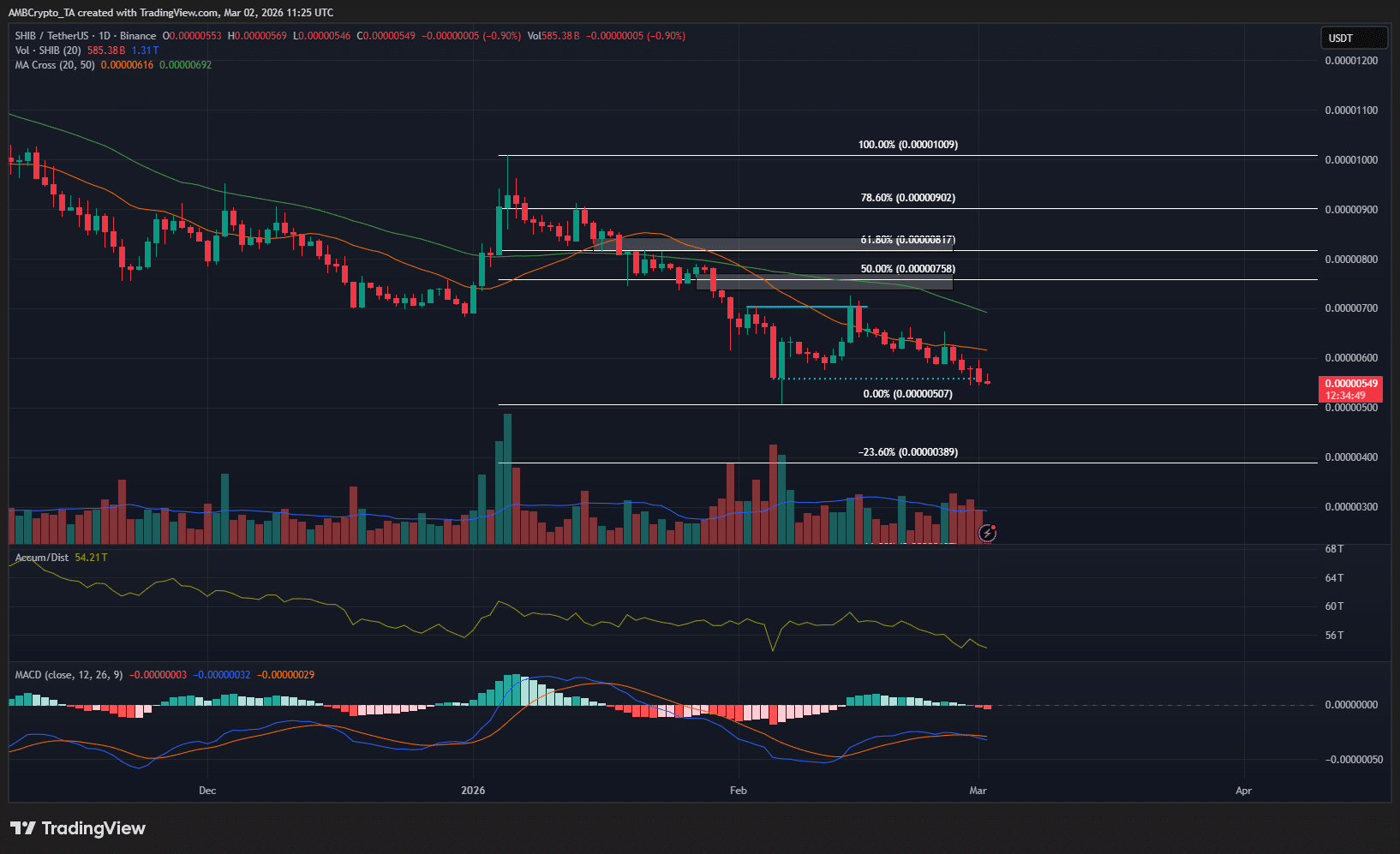 Shiba Inu [SHIB] continued to trend downward, following the memecoin sector’s general weakness.