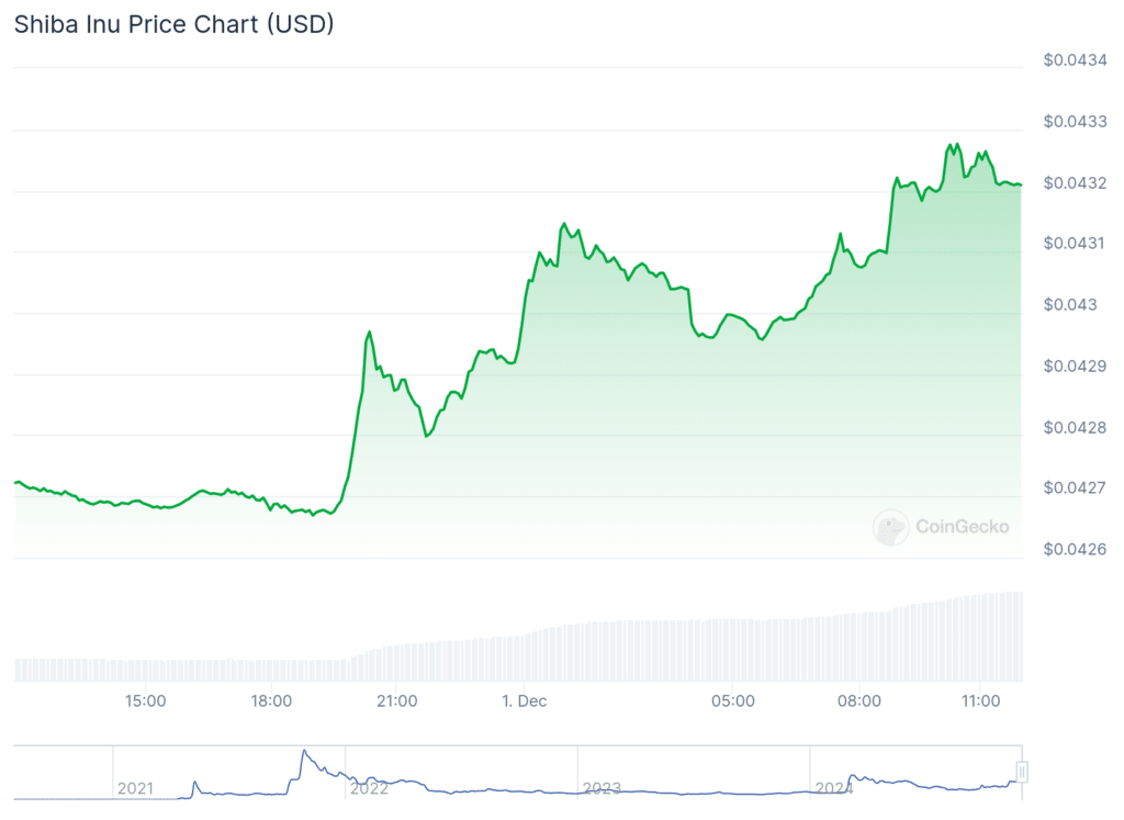 In a Nov. 21 X post, Analyst Ali Martinez predicted that SHIB could climb to $0.000037— 54% above its price at the time.