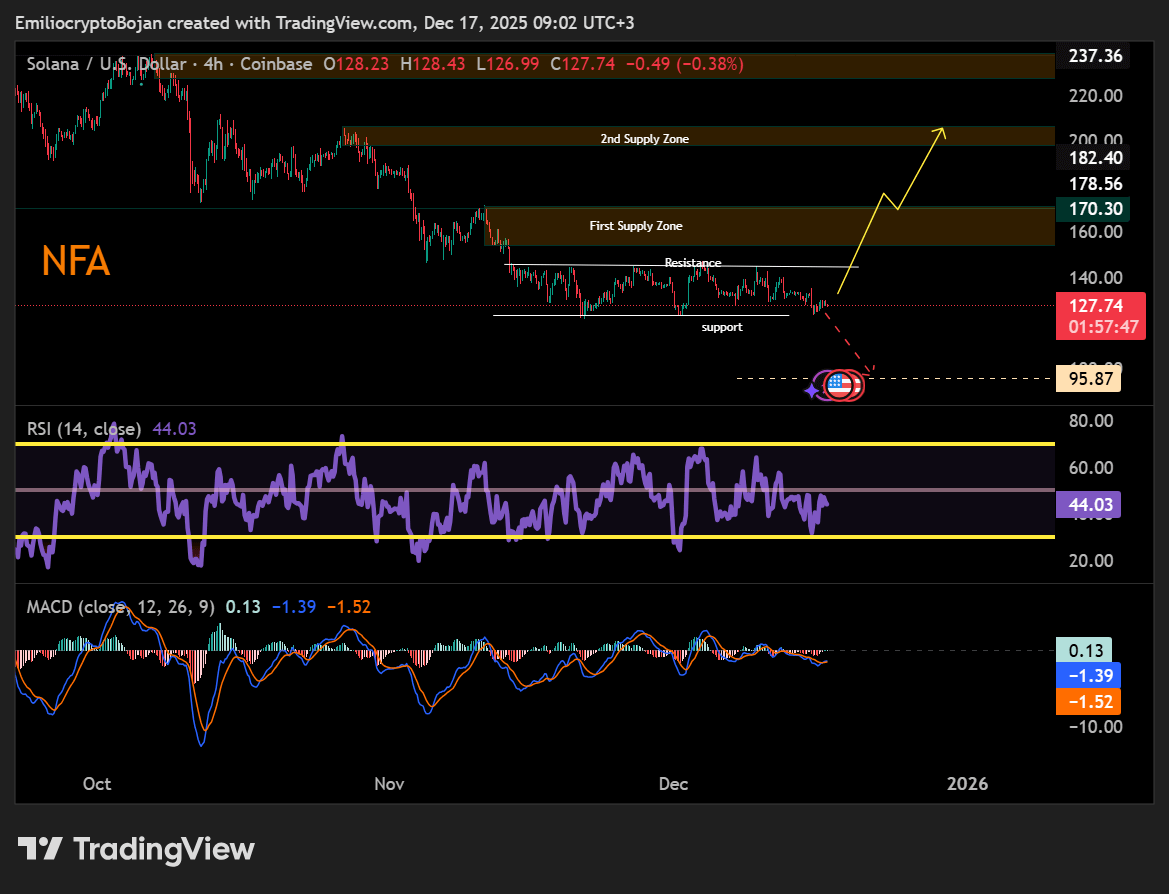 Despite expanding institutional access, Solana remained cautious and directionless. At press time, Solana [SOL] hovered near $128, trading inside the $122–$145 range.