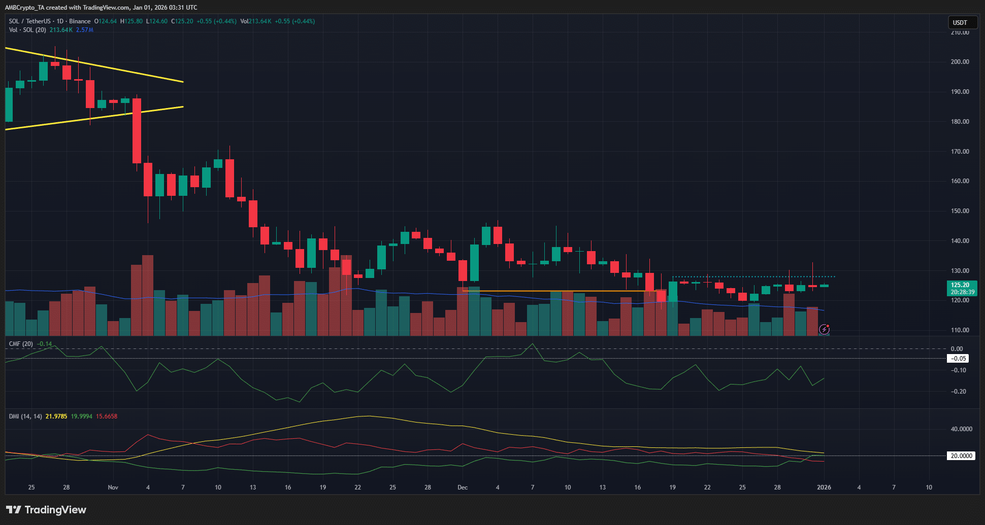 The 1-day price structure was bearish. To flip it bullishly, SOL would need to close a daily trading session above $127.87, the local swing high. The evidence at hand did not show that such a move was brewing.