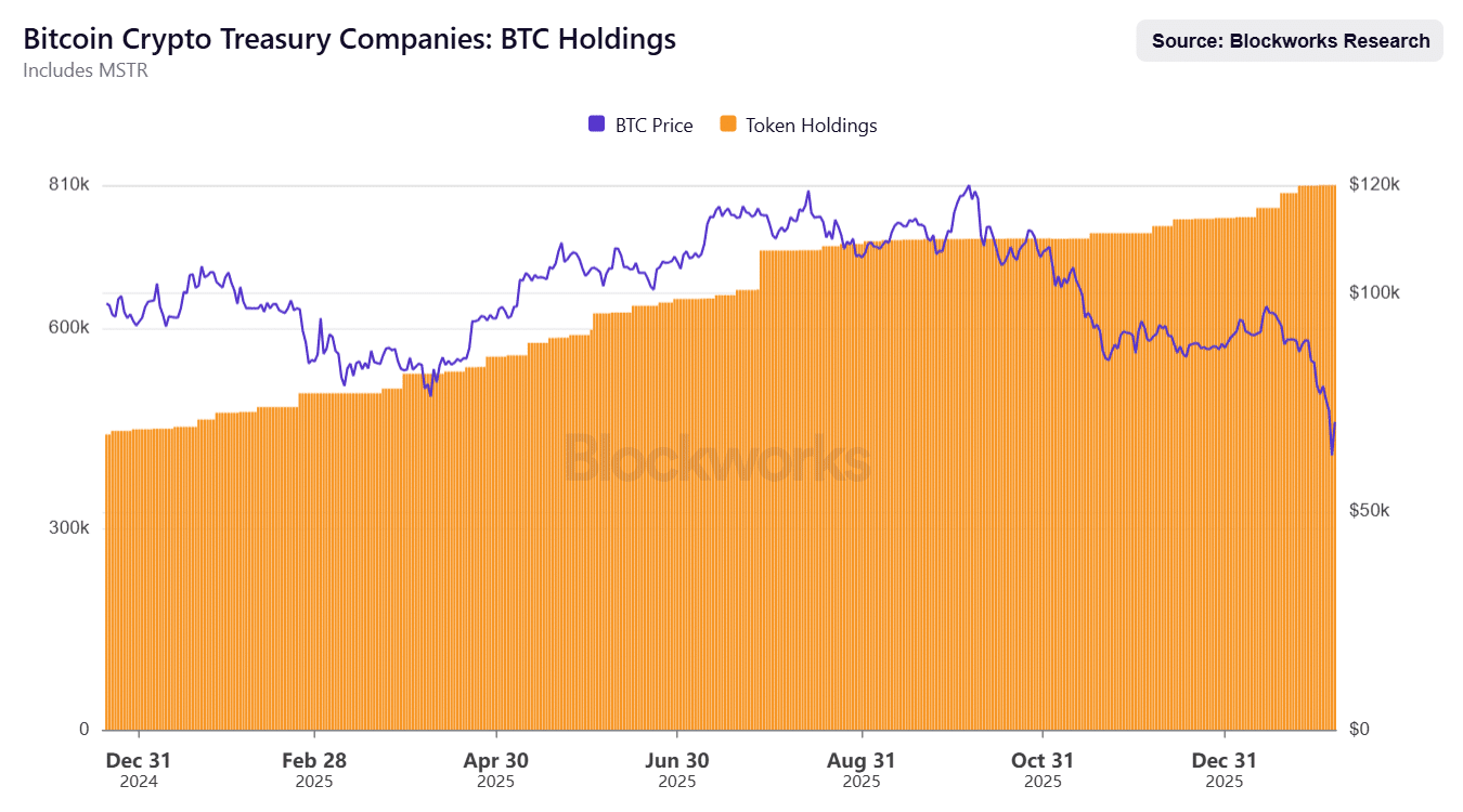 - Treasury firms held a collective of 813K BTC and didn’t reduce holdings during the sharp BTC price drop to $60K