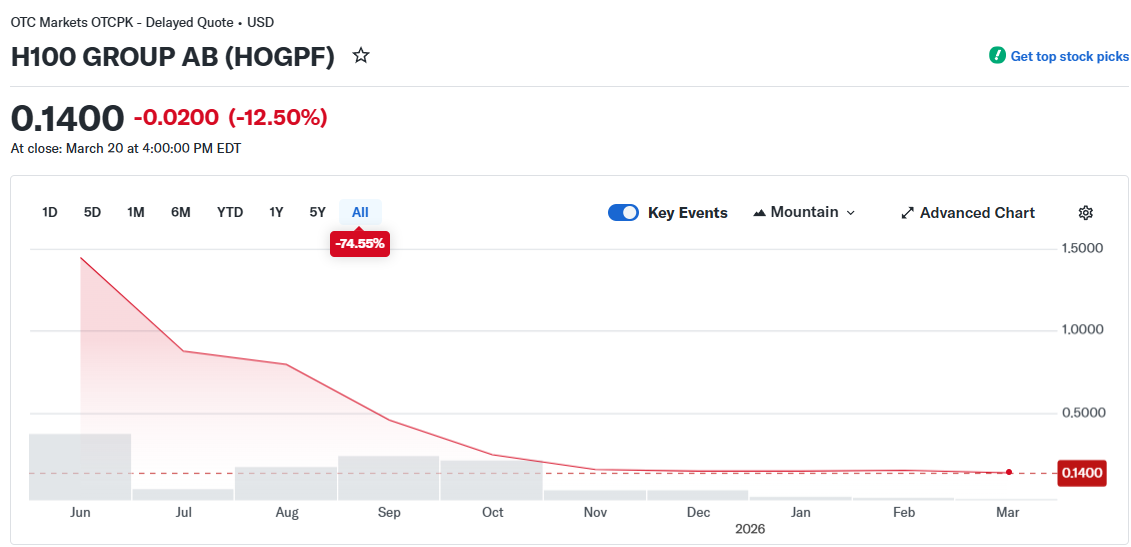 H100’s stock price has been declining. It fell by over 74% in the past nine months and over 26% year-to-date in 2026, Yahoo Finance data shows.