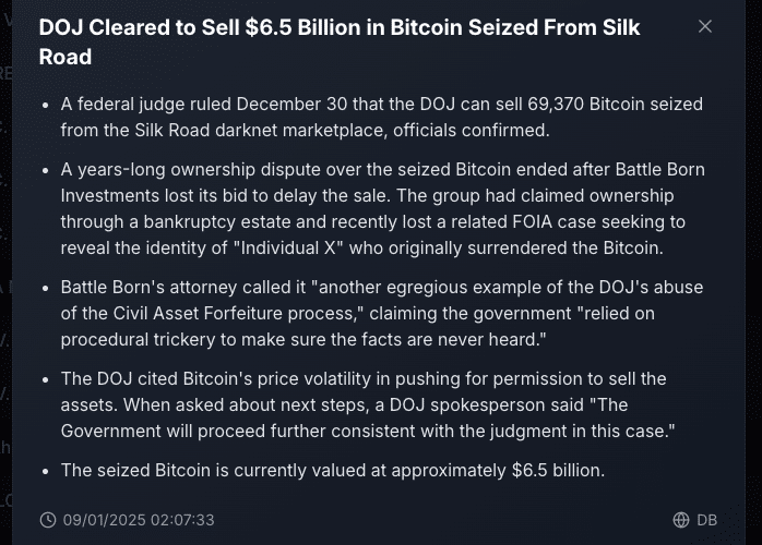 DOJ cleared to sell $6.5B Silk Road Bitcoin – No more U.S. BTC reserve?