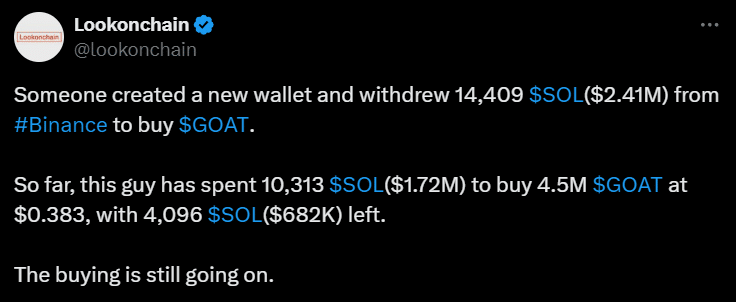 Whale buys GOAT worth $2.41 mln – Will the hype continue?