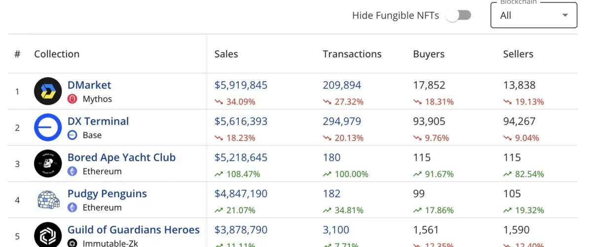 NFT sales drop 28% to $98m, Bored Ape Yacht Club sales surge 100%