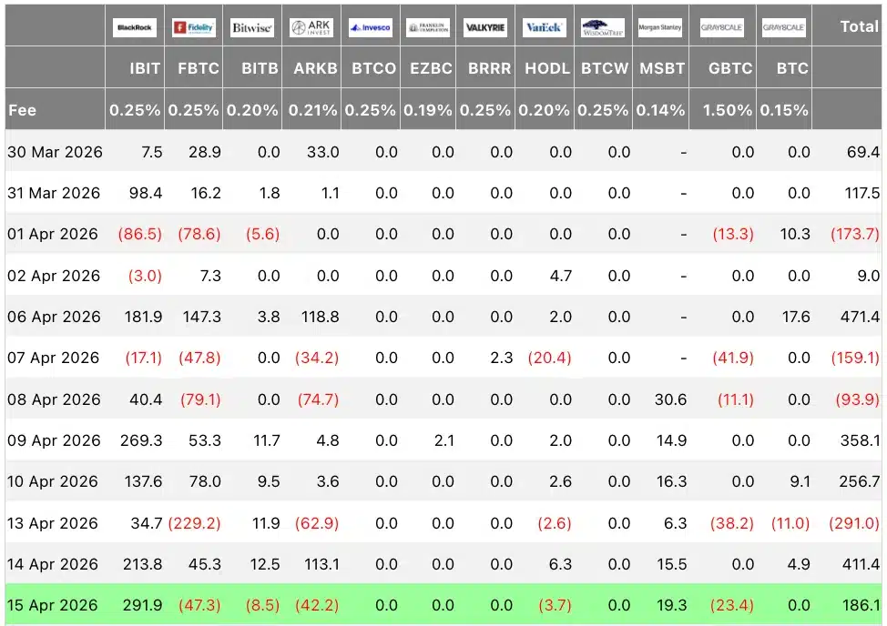 Meanwhile, Spot BTC ETFs saw inflows worth $411.4 million on the 14th of April and $186.1 million on the 15th of April, as per Farside Investors data.