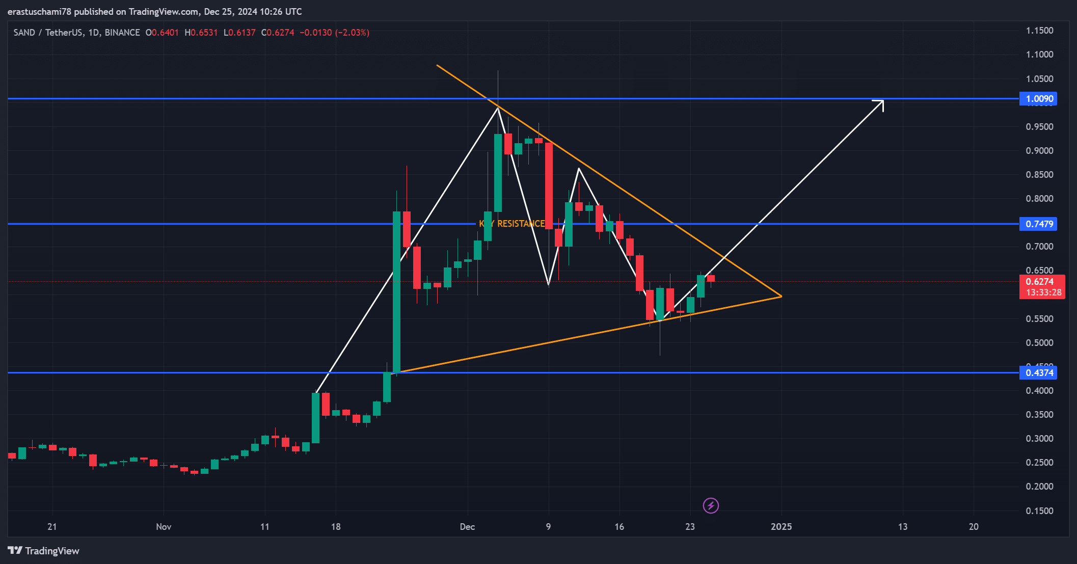 The Sandbox [SAND] has sparked optimism among traders as it broke above a critical resistance at $0.62, forming a bullish pennant on the daily chart.