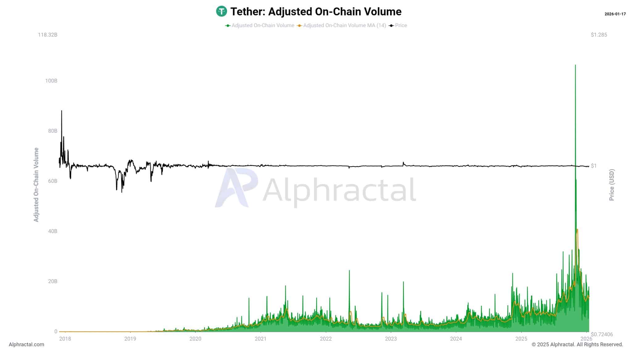 According to data from Alphractal, USDC transaction volumes have continued to rise even as activity in other stablecoins has slowed sharply.