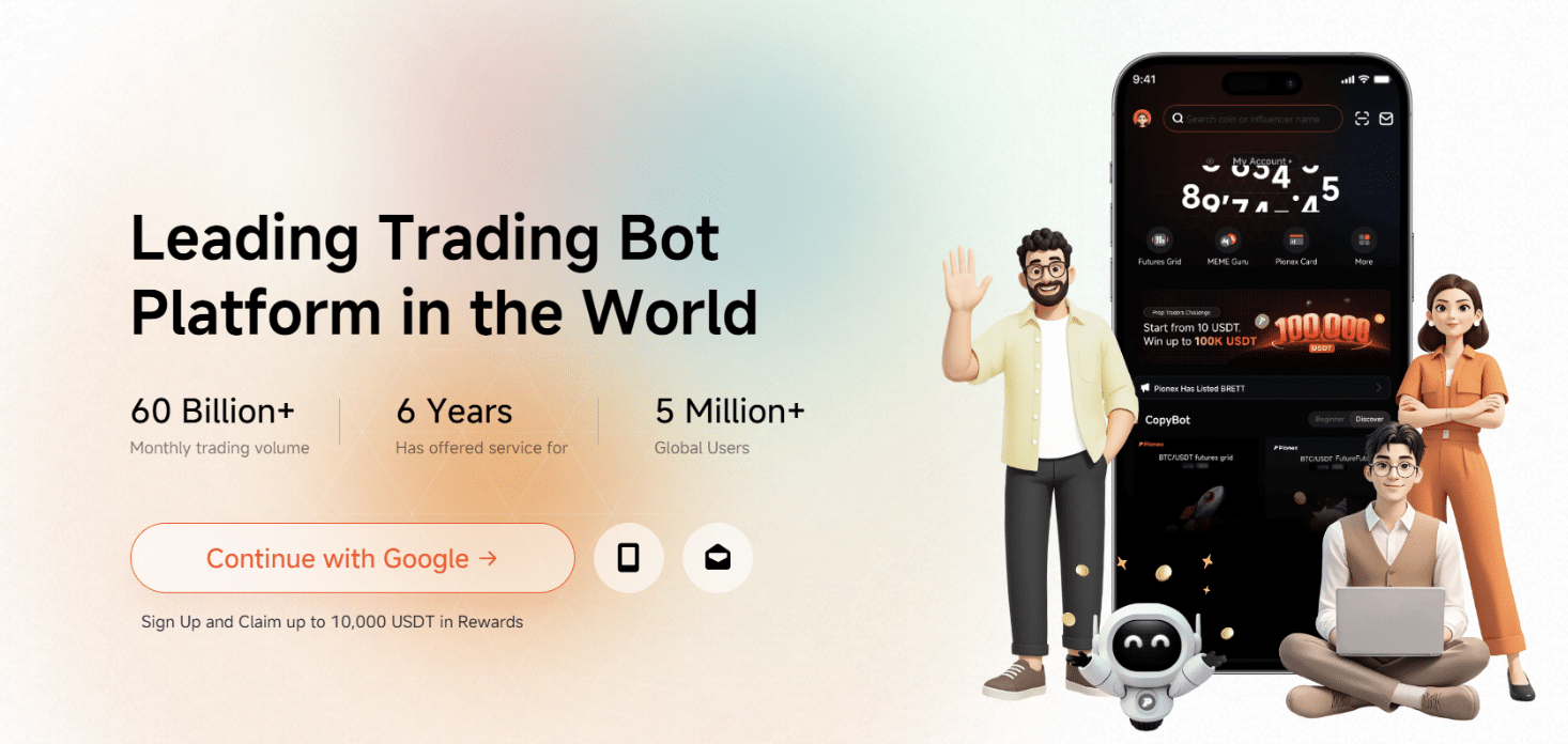 Pionex remains one of the easiest ways to enter Automated Trading because the bots are integrated directly into the platform rather than bolted on through third-party tools. Its public-facing site continues to position Pionex as a cloud-based crypto trading bot platform, while PionexGPT shows the company’s push to wrap AI around automation. For legal terms, the relevant service agreements reference Pionew UAB, governed under the laws of Lithuania.