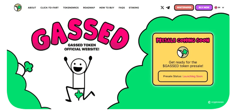 Currently in its presale phase, Gassed Token invites users to join a growing community around its “Click-to-Fart” play-to-earn game, which is a leaderboard-based challenge where every click releases a digital fart logged on-chain. The project plans to expand this concept into a full “Fart-to-Earn” ecosystem, complete with NFT drops and partnerships across the meme coin space. Payments are accepted via crypto or card, with presale details still developing as the project gains traction.