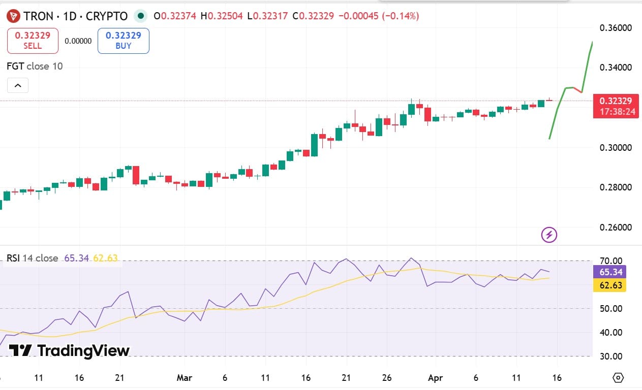 • TRX shows strong bullish momentum amid rising network usage and is likely to hit $0.36.