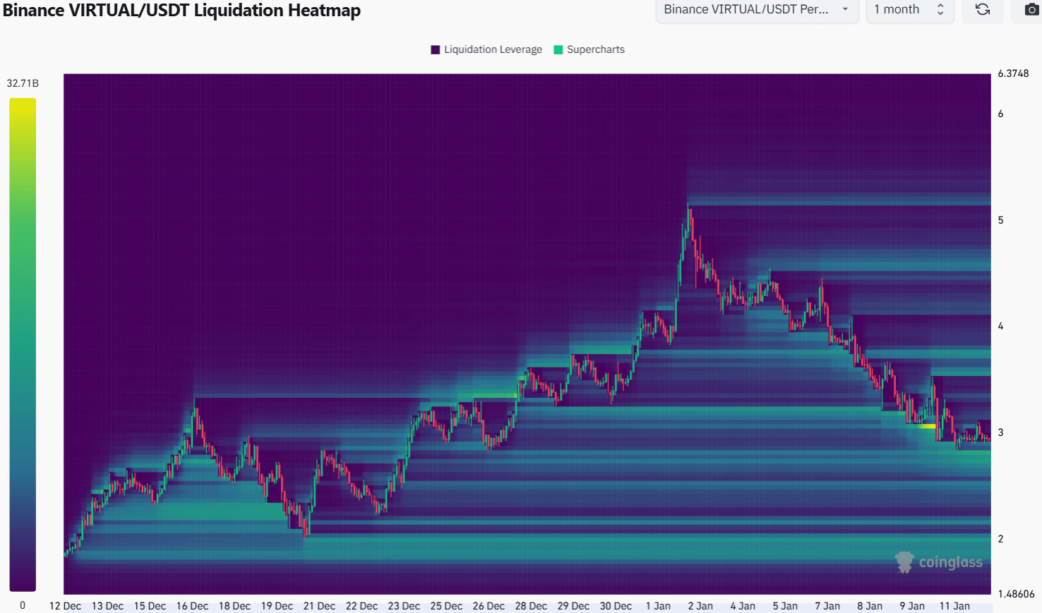 Virtuals Protocol has shed 37.81% in the last ten days, measured from the session close on 02 January and not the high at $5.25. The $5.25 measurement brought the losses to 45%. In either scenario, the outlook for VIRTUAL would be strongly bearish.