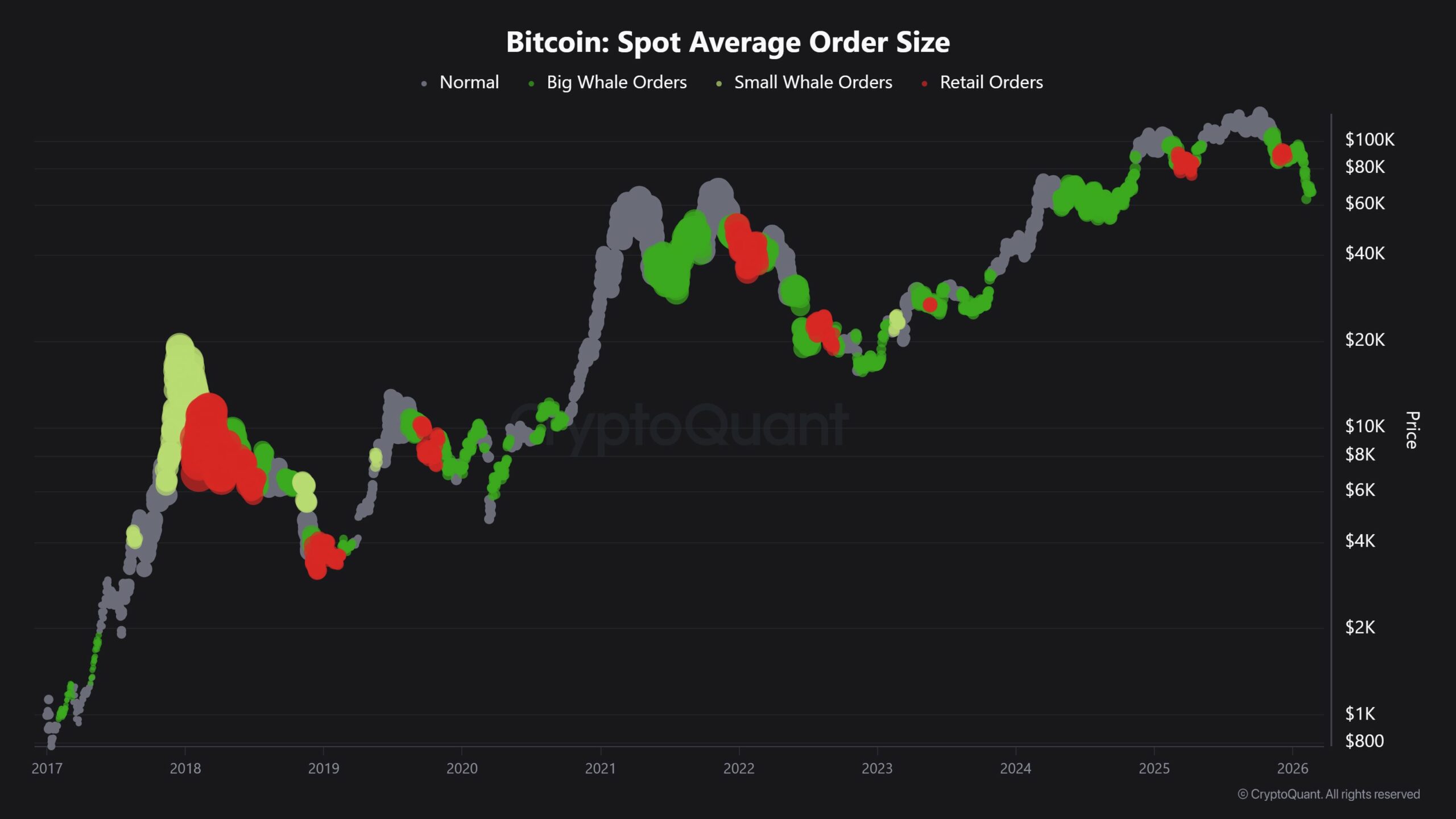 “Downside protection remains in demand. Over the past few hours: 1864 BTC $58K puts bought for 27FEB26 ($687.72k), 276 BTC $58K puts bought for 6MAR26 ($205.14K). Also, 600 BTC $55K puts bought for 27MAR26 ($551.18K) on Feb 17.”