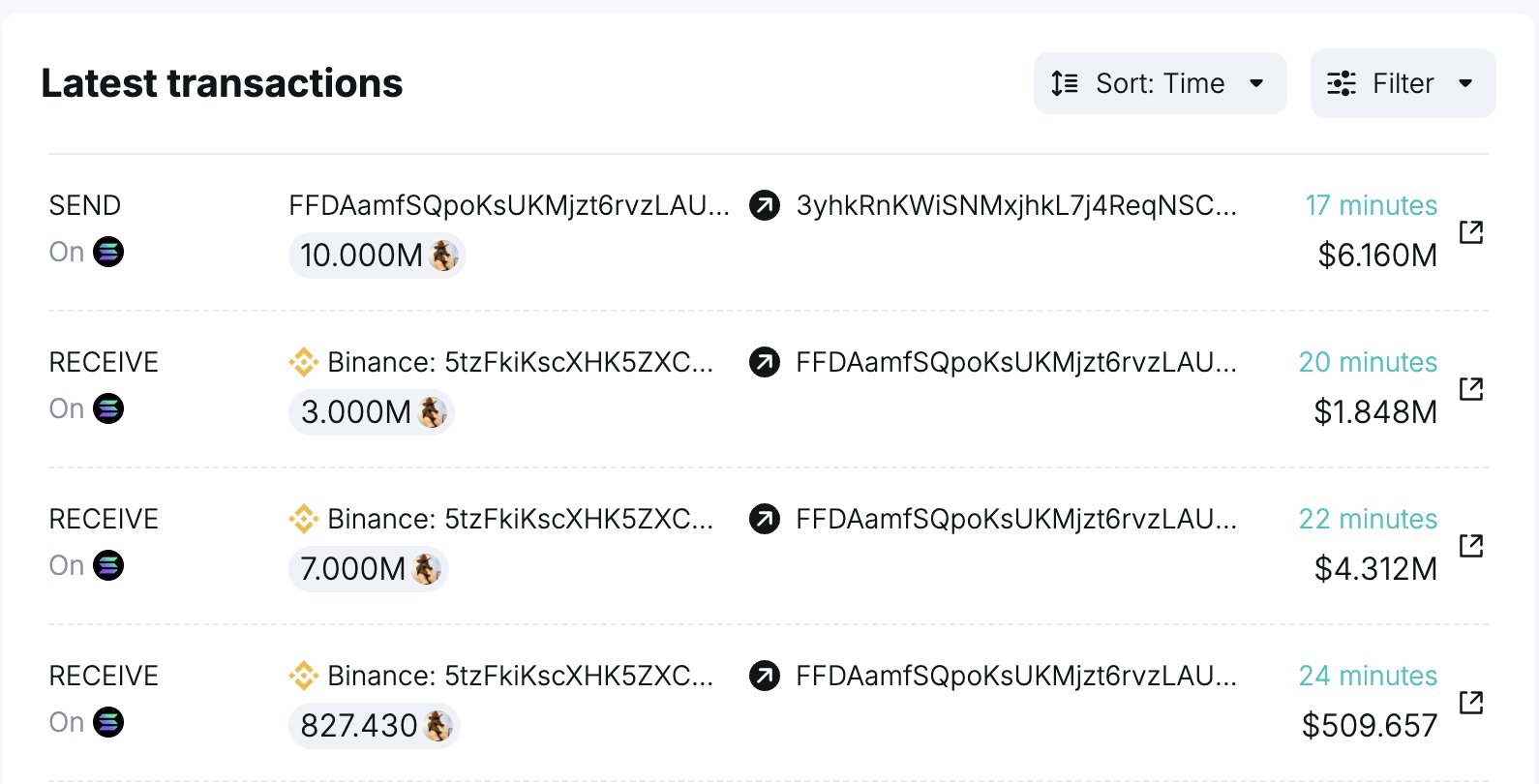 The firm noted that a whale had scooped 10 million PNUT from Binance exchange, worth over $6M. Now, the whale holds 1% of the memecoin’s total supply.