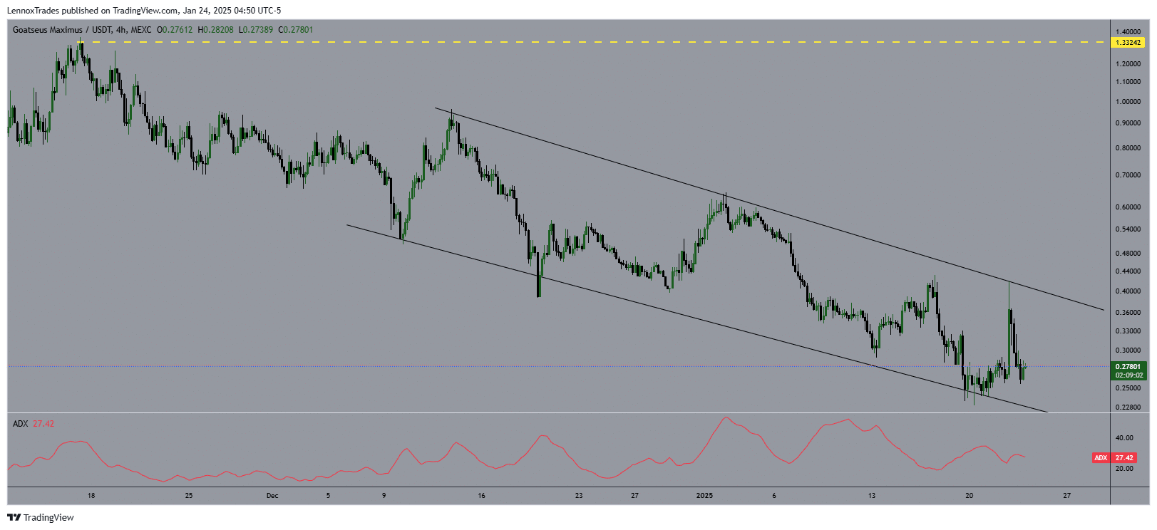 At the time of writing, the price of Goatseus Maximus (GOAT) was trading within a falling trend channel. This was evidenced by the fact that its peak of $1.30+ underlined the potential for a significant breakout. Especially if certain conditions are met.