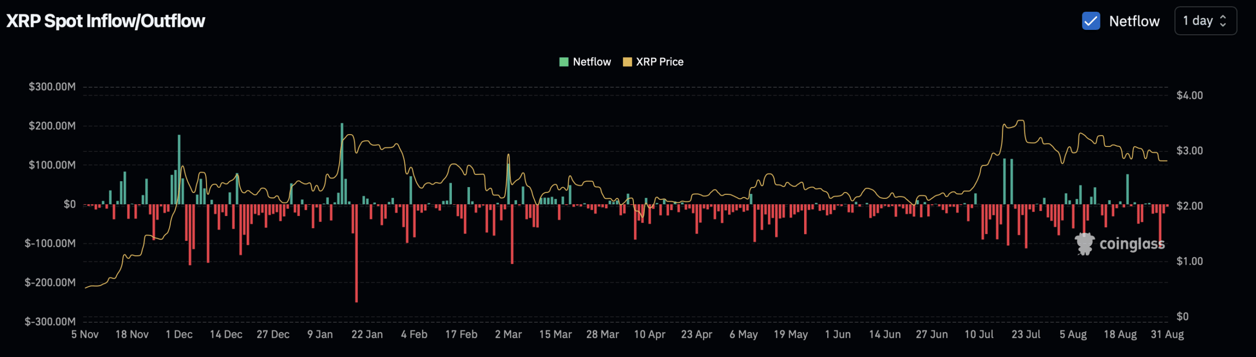 Spot investors also joined in. Data from CoinGlass’ Spot Exchange Netflow showed that $268 million worth of XRP was withdrawn from exchanges over the past ten days.