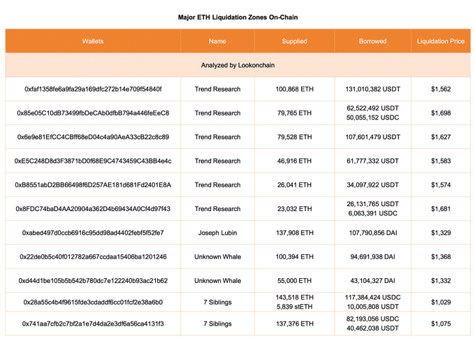 Tension has been mounting for Ethereum’s largest holders of late. For example – Joseph Lubin, alongside two unknown whales and “7 Siblings,” are dangerously close to their liquidation zones. Lubin, with over 137,000 ETH, faces liquidation prices as low as $1,329. “7 Siblings” holds nearly 287,000 ETH, with liquidation levels at $1,029.