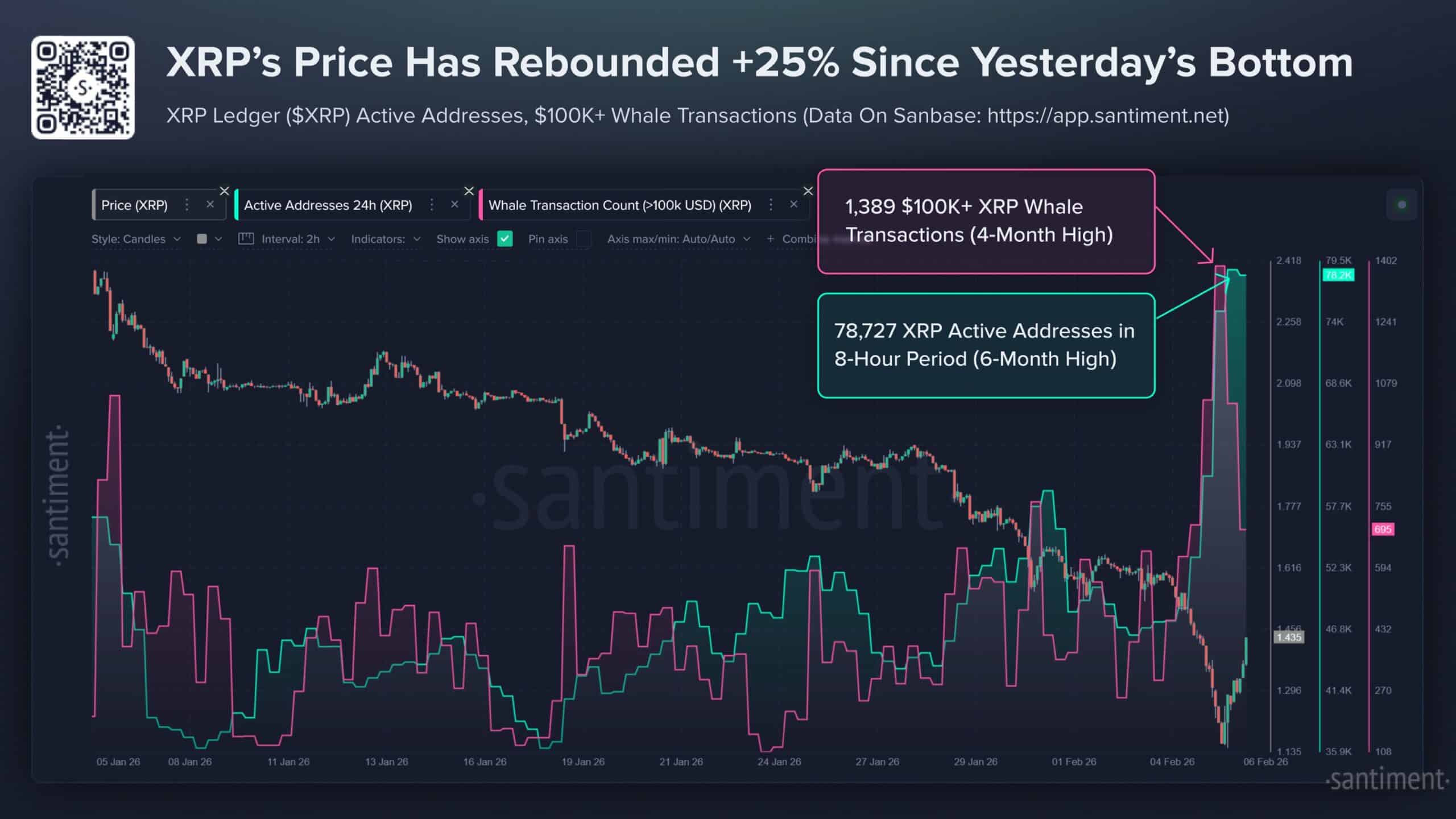 As prices stabilized, on-chain data began confirming strategic accumulation. XRP rebounded over 25% from sub-$1.15 lows to reclaim the $1.50 zone.