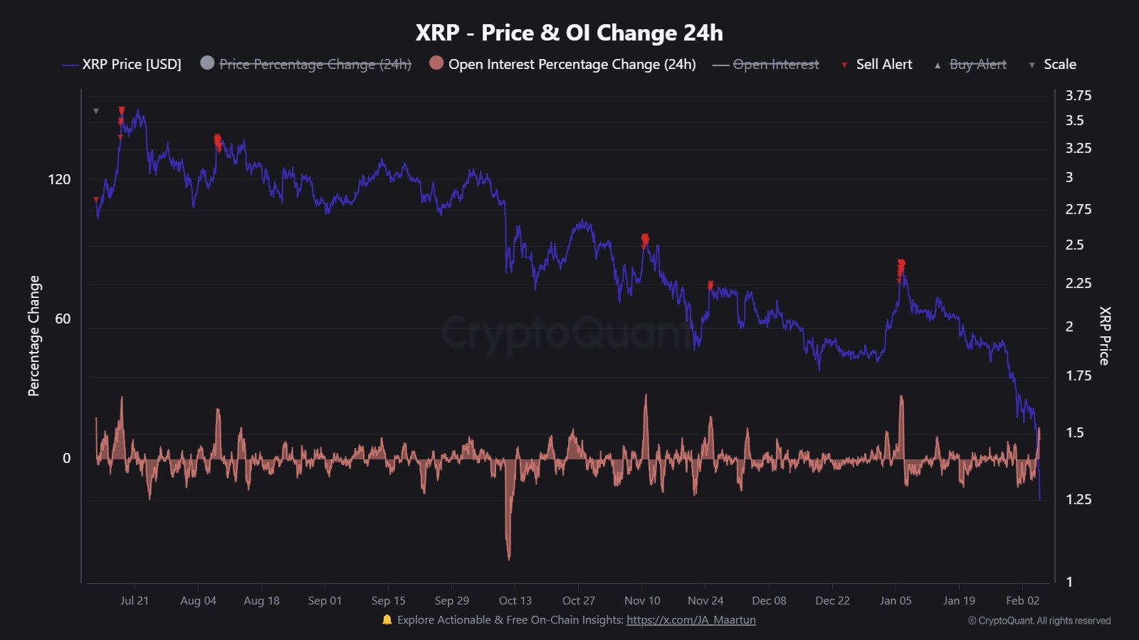 Ripple’s [XRP] price structure has been trending downwards, printing lower highs while sliding from above $3.50 toward the $1.50 zone.