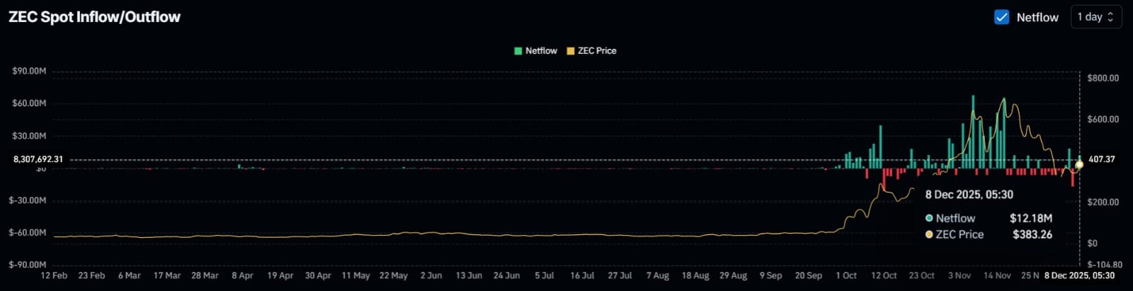 ZEC’s exchange flows pointed to possible selling pressure.